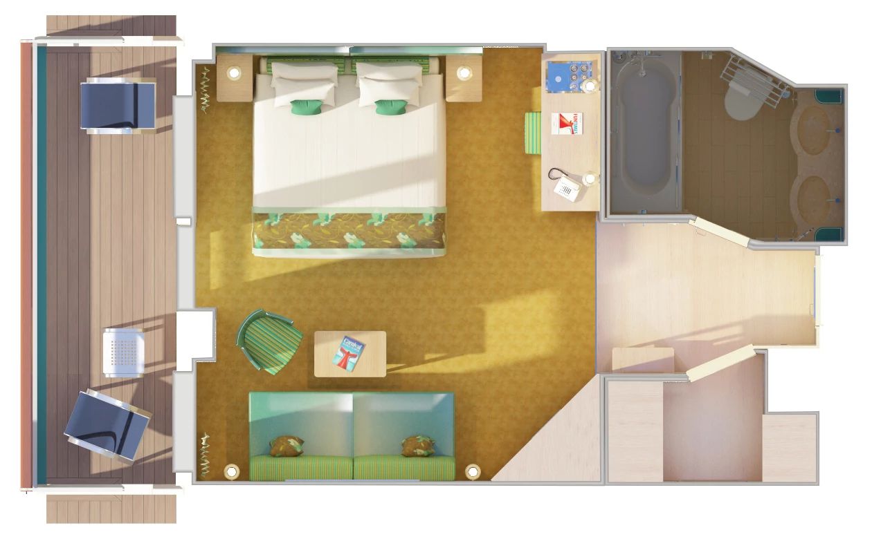 At Carnival we love to cruise as much as anyone, but when you book a Havana stateroom, it's like you're no longer on a ship... you're at an exclusive island resort. But unlike most spots on land, you're never far from the ocean... or from the Havana Bar & Pool. (You'll enjoy exclusive access to the pool area!) Inside, all Havana staterooms feature a unique décor, but step up to a Havana Cabana for an extra-large outdoor chill space featuring a lounge-ready hammock chair. Step into a Havana Cabana suite for even more space, plus a luxurious rain shower. (All Havana stateroom guests must be 12 or older.)